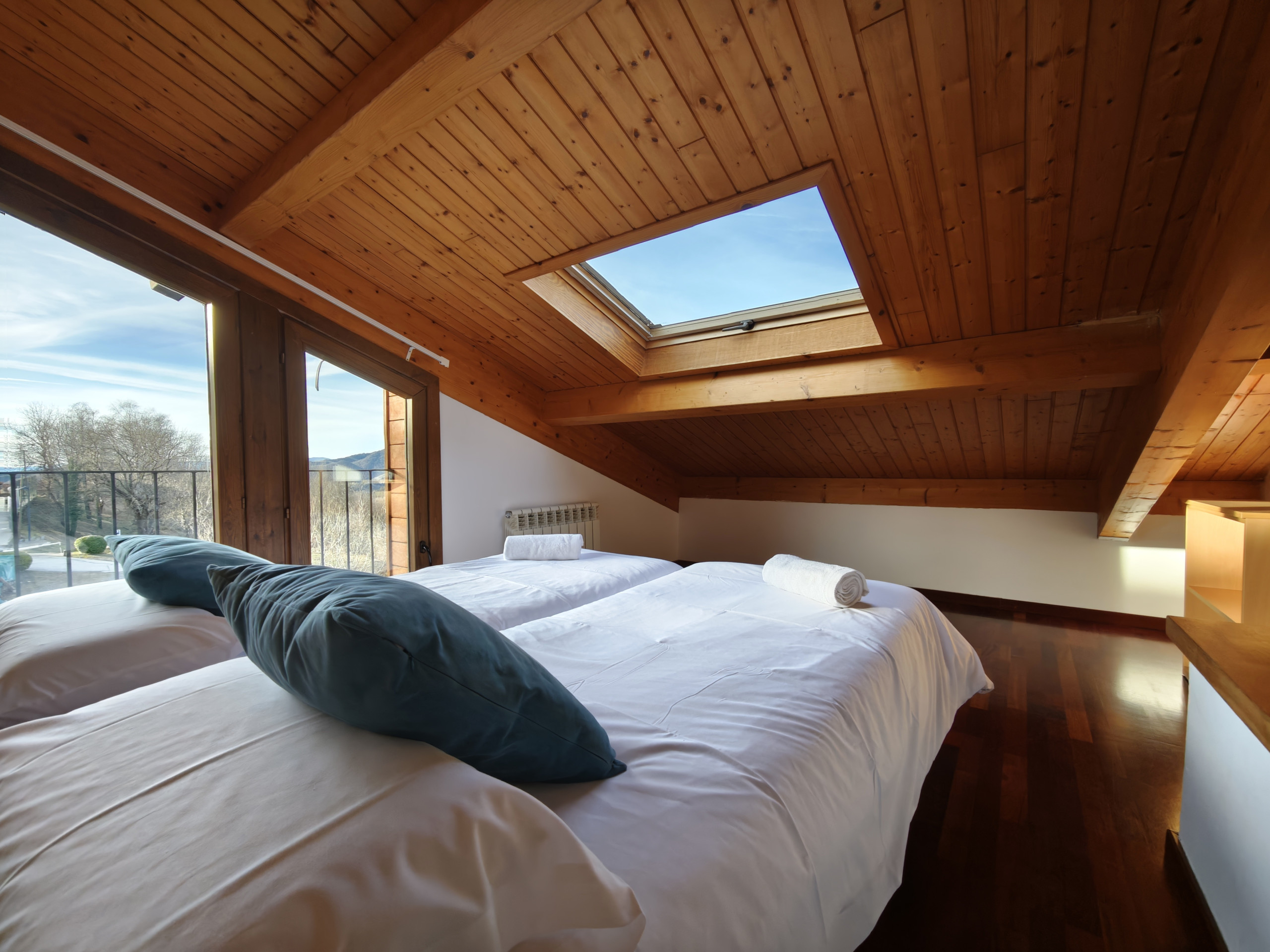 1 habitación con 2 camas individuales y sofá-cama en el altillo