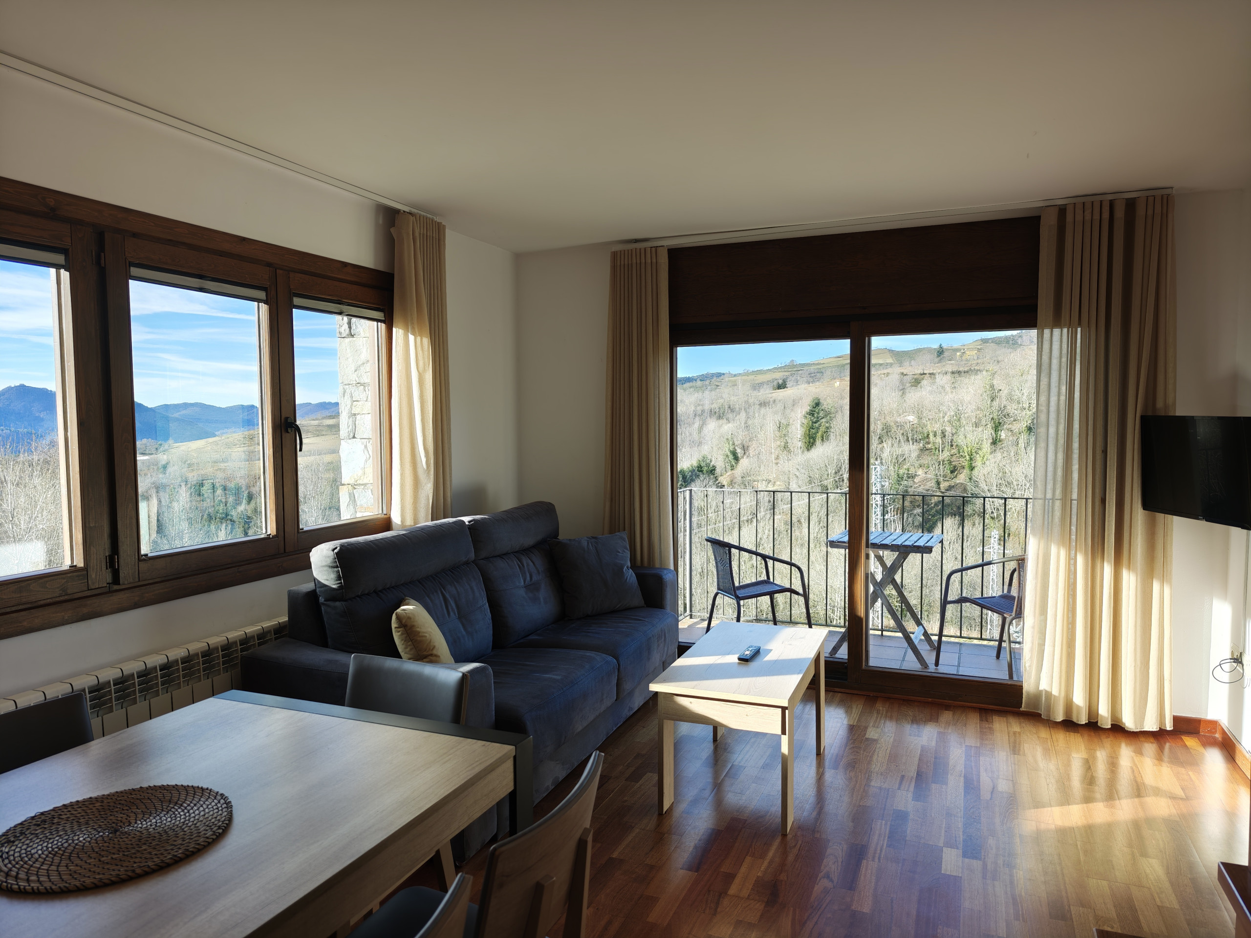 Desconecta de la rutina en este alojamiento único y relajante, ubicado en Espinavell, Molló, rodeado de naturaleza por todas partes.Este apartamento en medio de la naturaleza está ubicado en Espinavell (Molló), en la provincia de Girona. El alojamiento de 1 planta es ideal para grupos o famílias ya que puede alojar hasta un máximo de 6 personas. Su interior contiene: 2 dormitorios equipados. En uno encontrarás una cama de matrimonio, en otro hay 2 camas individuales. Todas ellas están vestidas con sábanas y colchas. Incluyen un armario, cómodas y mesillas. 1 cuarto de baño completo. Dispone de una ducha. Podrás utilizar los juegos de toallas, artículos de aseo y un secador de pelo. Una sala de estar espaciosa. Cuenta con una chimenea de leña, un televisor, un sofá cama ideal para grupos de 6 personas. Hay unas ventanas que permiten que entre la luz del sol y disfrutar de unas espectaculares vistas a todo el Valle. Una zona de comedor en el salón. En ella hay una mesa de madera con 6 cómodas sillas. Una cocina completa. Dispone de vajilla y menaje en sus armaritos. Además encontrarás electrodomésticos como un microondas, nespresso y un frigorífico. En el exterior del apartamento hay: Zonas de aparcamiento donde podrás dejar tu vehículo durante tus vacaciones. Zona de BarbacoaEl apartamento está en la zona rural de Molló, en la provincia de Girona. Estarás cerca de preciosos parques naturales.Podrás hacer rutas de senderismo en este parque. Una de ellas te llevará hasta el pico de Costabona, allí tendrás unas vistas del paisaje espectaculares.En otros parques naturales cercanos podrás realizar divertidas actividades de aventura en unos circuitos o ver increíbles animales de la zona. Estarás muy cerca de Francia. Si cruzas el frontera a Francia tendrás la opción de visitar la bonita Torre del Mir, que está a 40 minutos en coche más o menos.3 comentarios