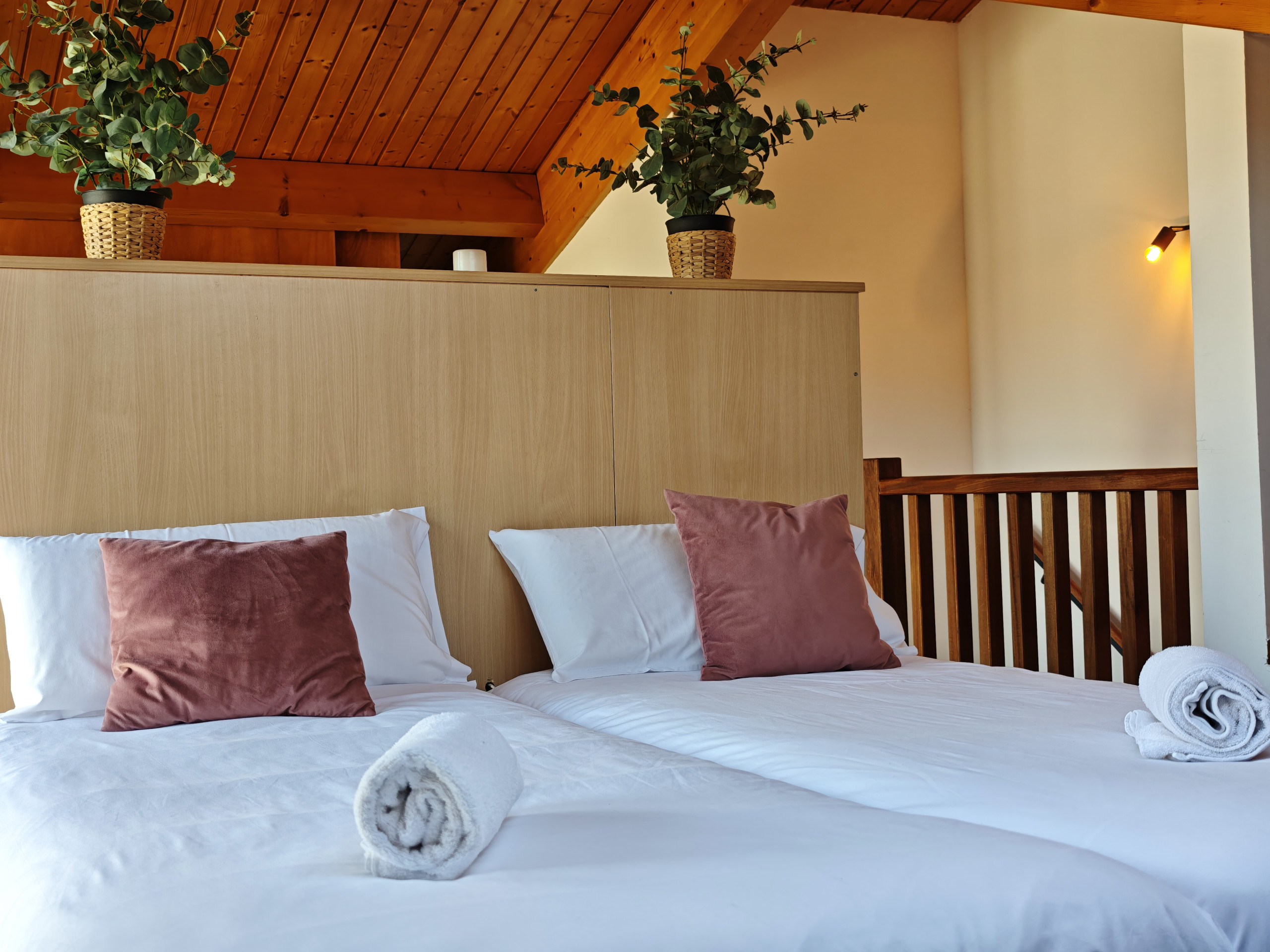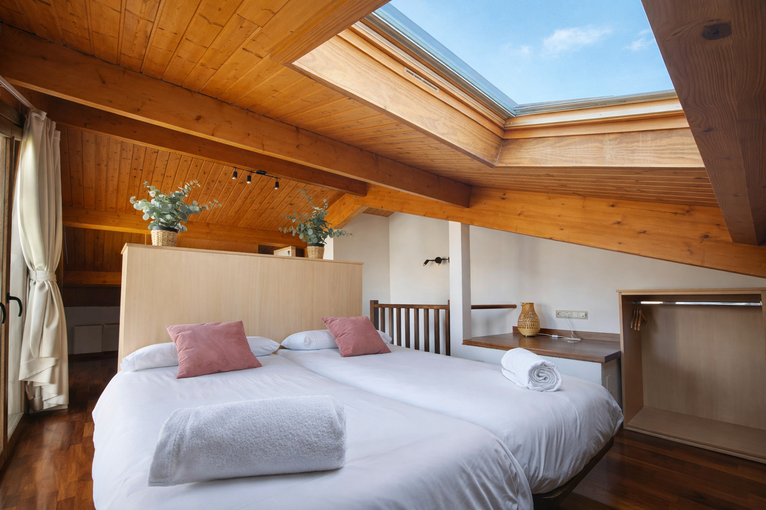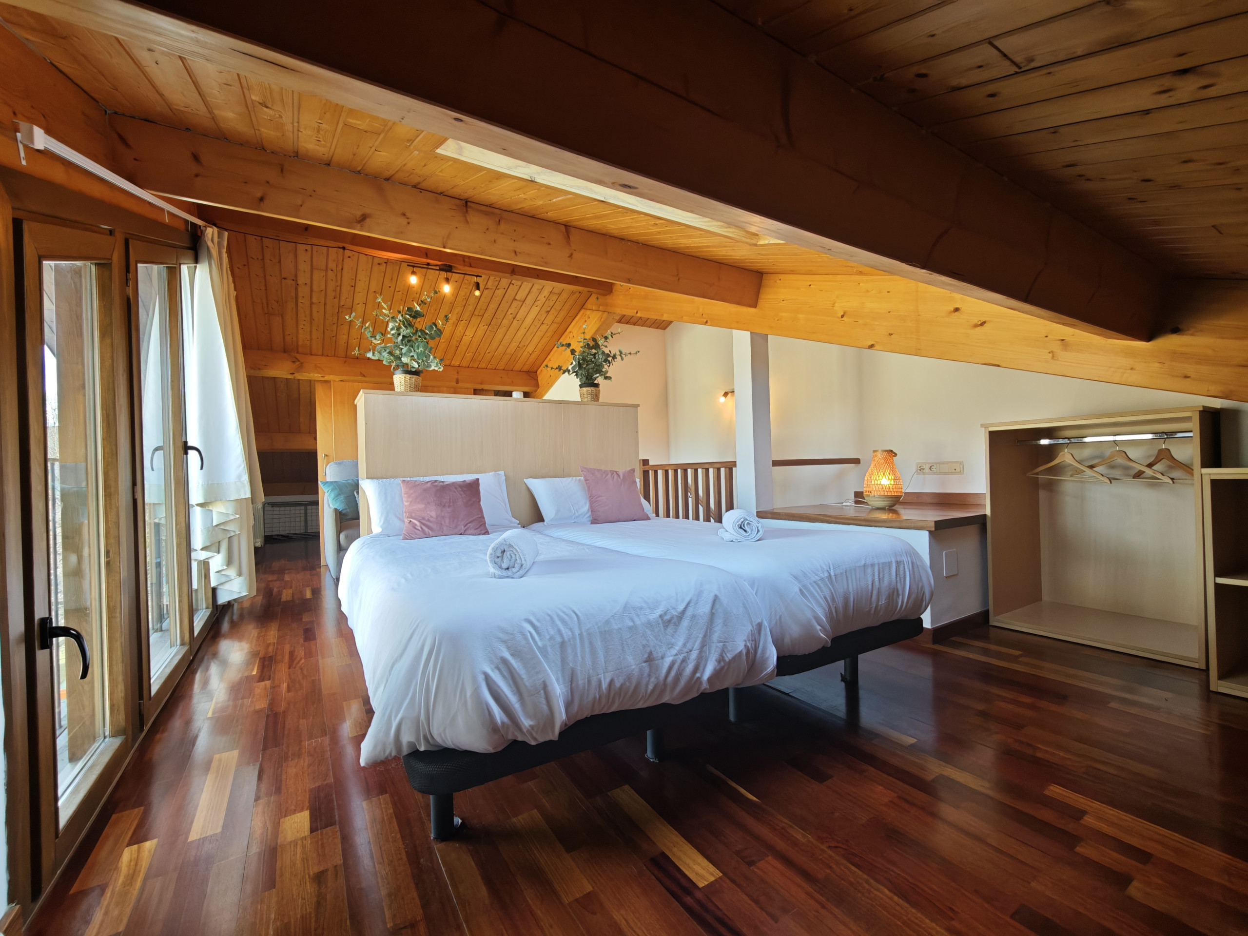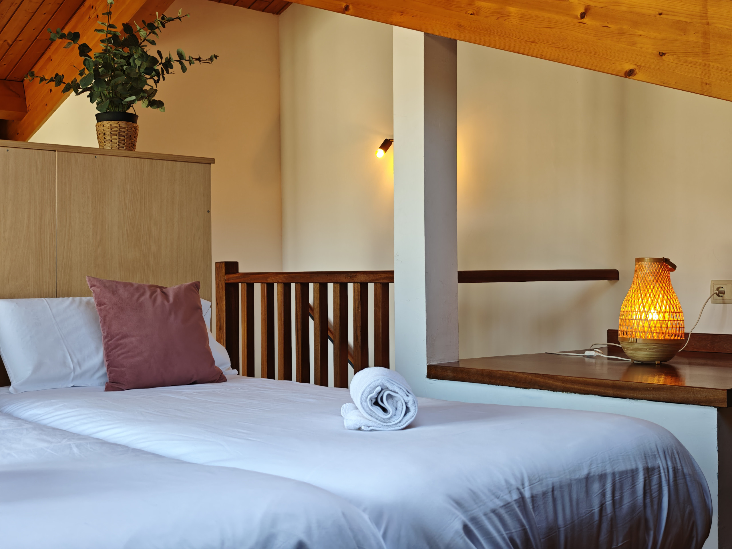1 habitación con 2 camas individuales y sofá-cama en el altillo
