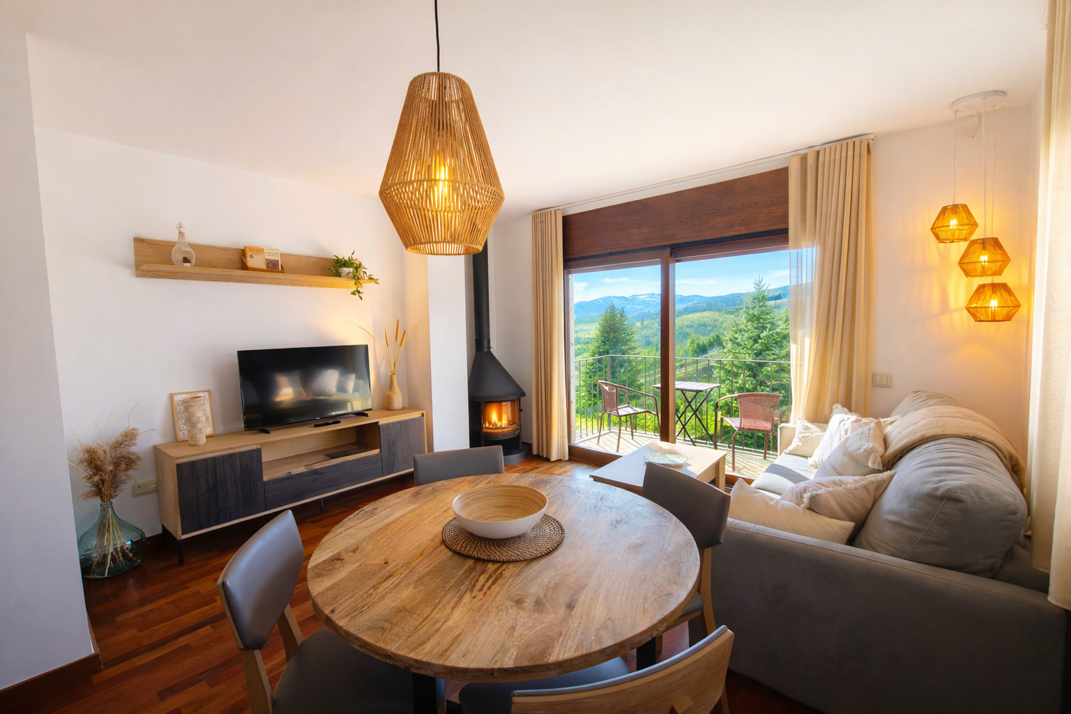 El interior del apartamento combina funcionalidad y calidez, creando un espacio acogedor tras una jornada en la naturaleza.