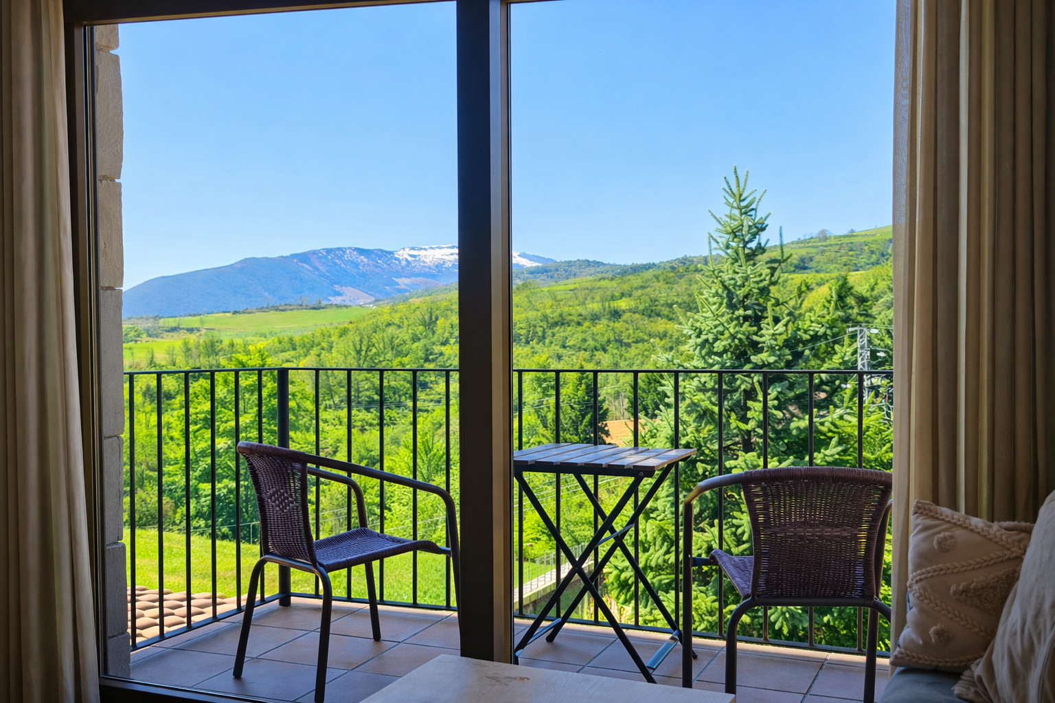 Desde el balcón y la terraza, el entorno se muestra en todo su esplendor, ofreciendo escenas naturales únicas en cada estación del año, ideales tanto para comenzar el día con tranquilidad como para relajarse al atardecer.