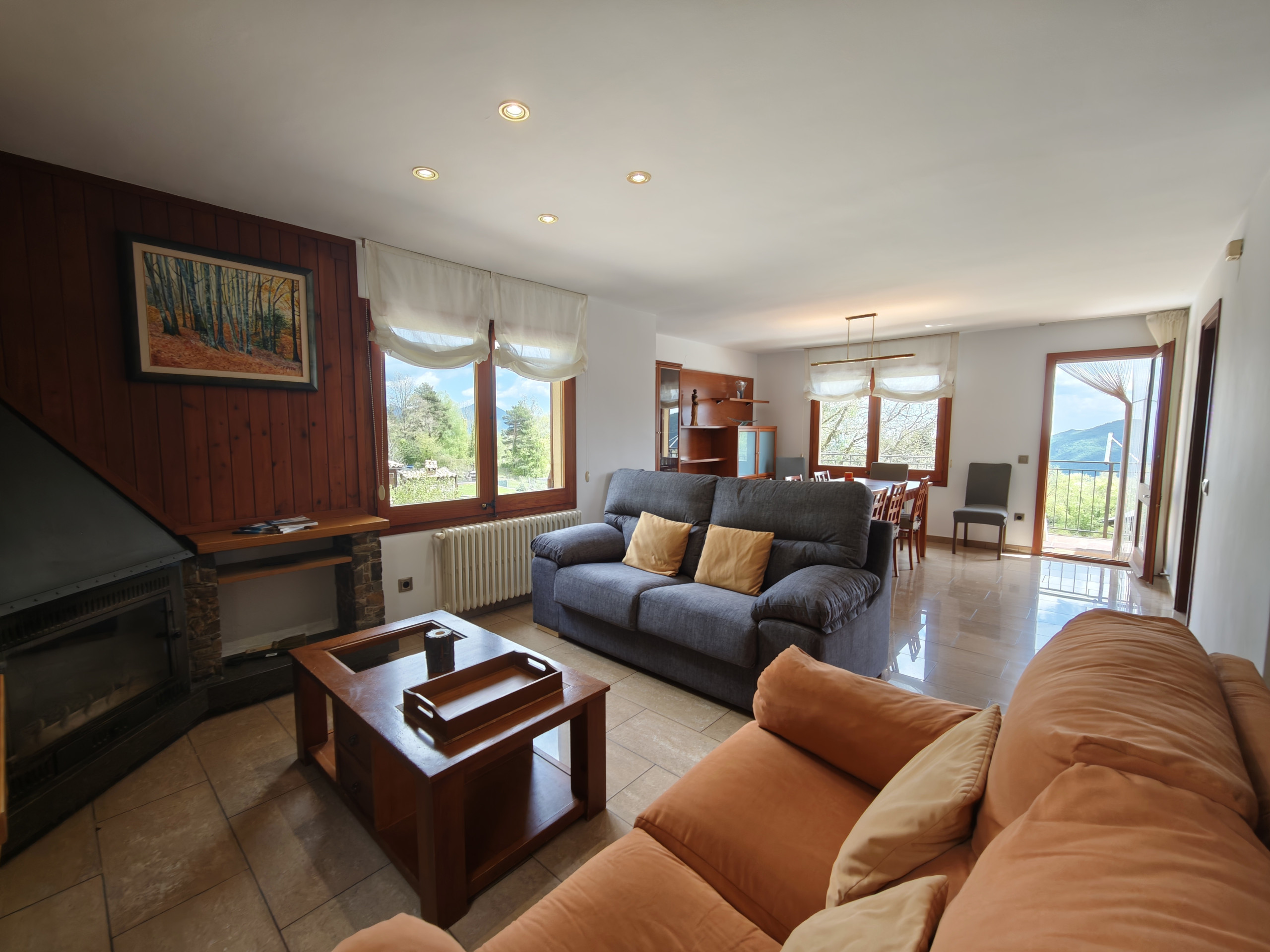 Desde casi todas las estancias de la casa se disfrutan vistas espectaculares al valle de Camprodon y a las montañas del Pirineo, creando un entorno de paz y belleza natural durante todo el año. Orientada al sur, la vivienda goza de luz natural constante y una conexión directa con el paisaje, con una terraza panorámica de 20 m² ideal para desayunos al sol o cenas al atardecer.