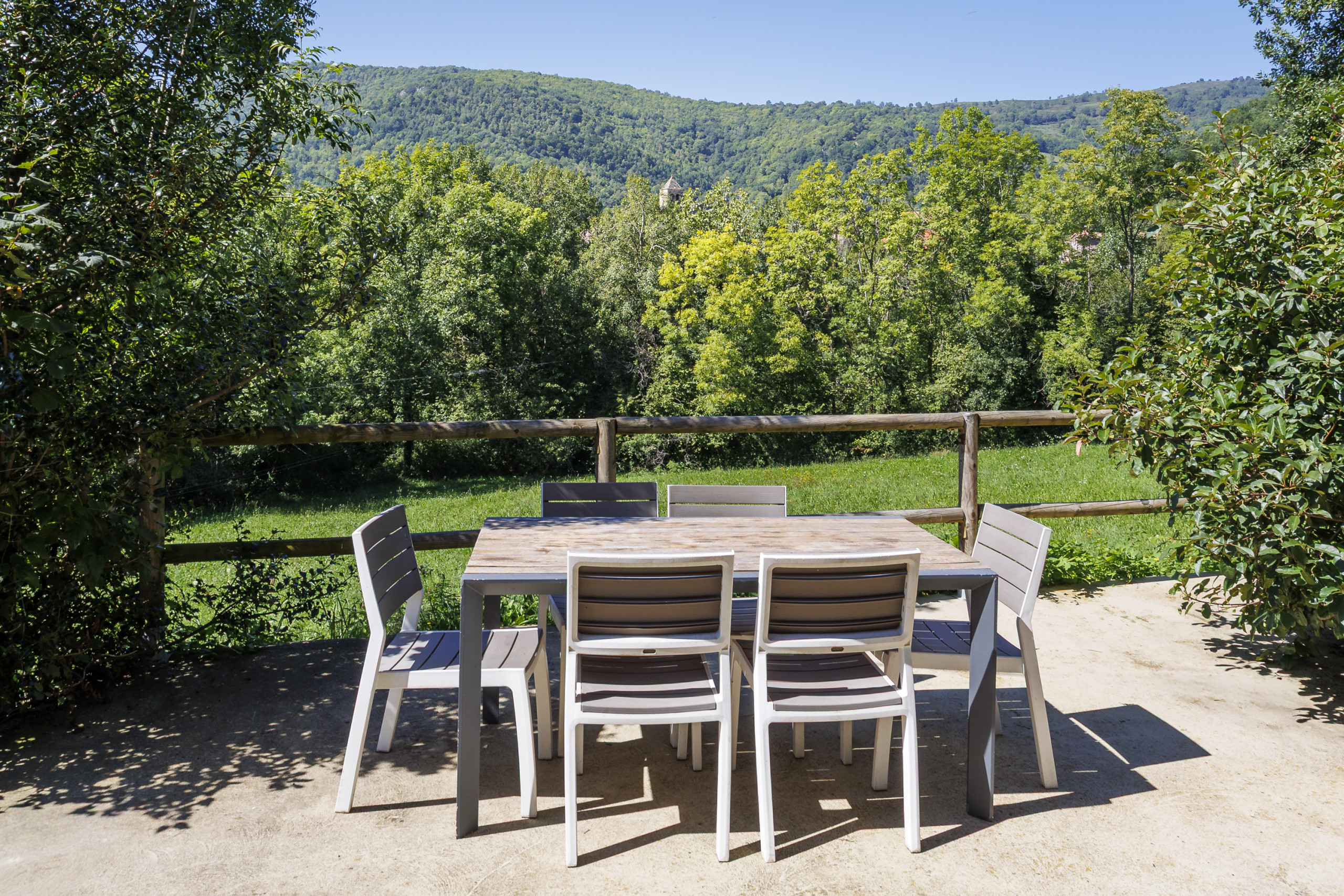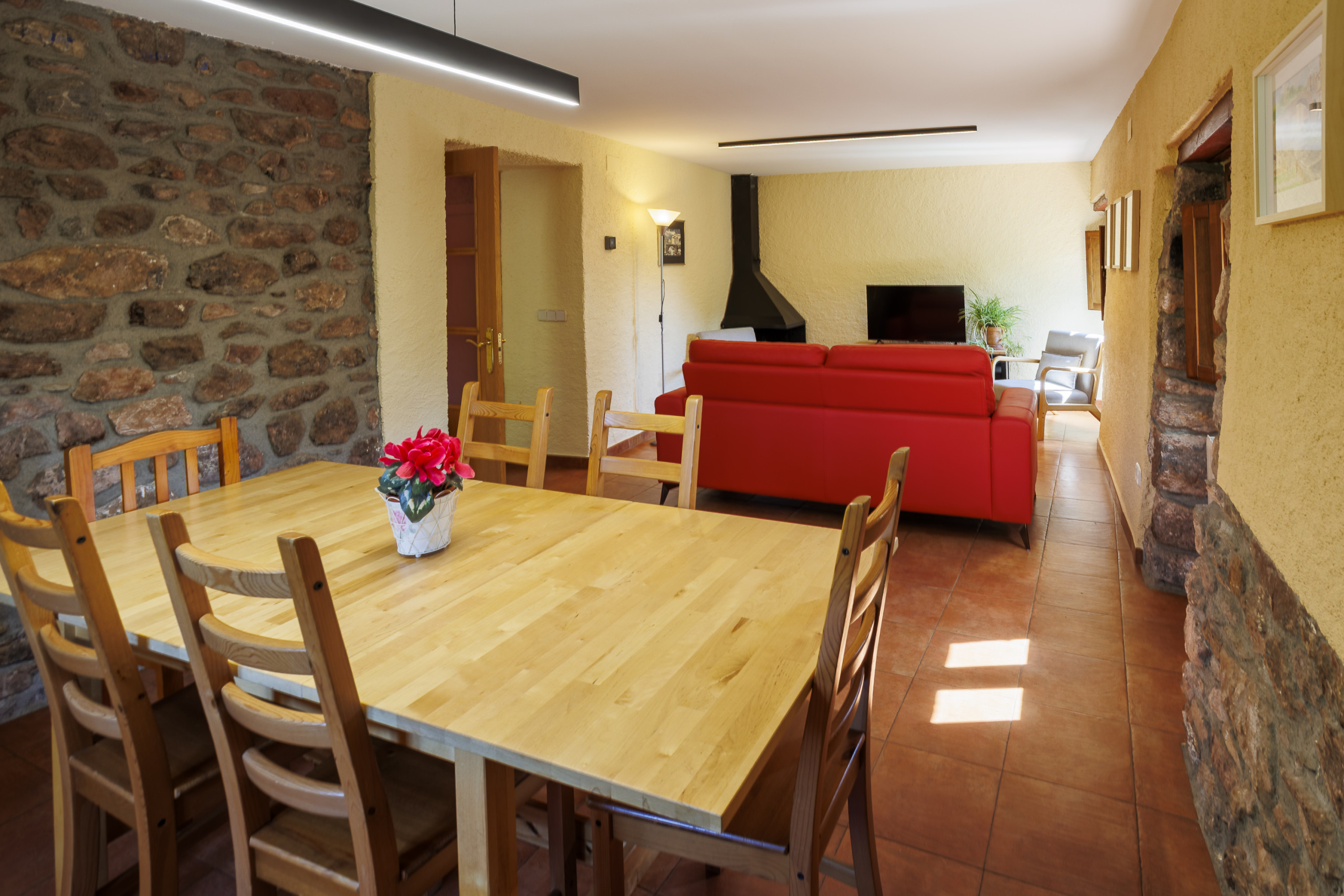 Disfruta de una estancia en este acogedora y espaciosa casa rural en Camprodón. Con 6 dormitorios y 4 baños, puede alojar cómodamente a hasta 16 personas. La propiedad cuenta con una cocina totalmente equipada con electrodomésticos como nevera, congelador, lavadora, cafetera y horno. Además, dispone de dos cocinas de vitrocerámica para que puedas preparar tus comidas con comodidad.El alojamiento ofrece una agradable zona de estar con chimenea, así como conexión WiFi para que puedas mantenerte conectado durante tu estancia. Además, cuenta con 2 televisores para que puedas disfrutar de tus programas favoritos.En el exterior, podrás relajarte en el amplio jardín, disfrutar de las zonas de estar al aire libre y hacer uso de la barbacoa. La propiedad también cuenta con una terraza para que puedas disfrutar de las vistas.El alojamiento dispone de 7 plazas de aparcamiento al aire libre en el mismo edificio, lo que facilita el estacionamiento de tu vehículo.Mascotas bienvenidas, con un máximo de 2 animales. Está permitido fumar en el exterior de la propiedad.