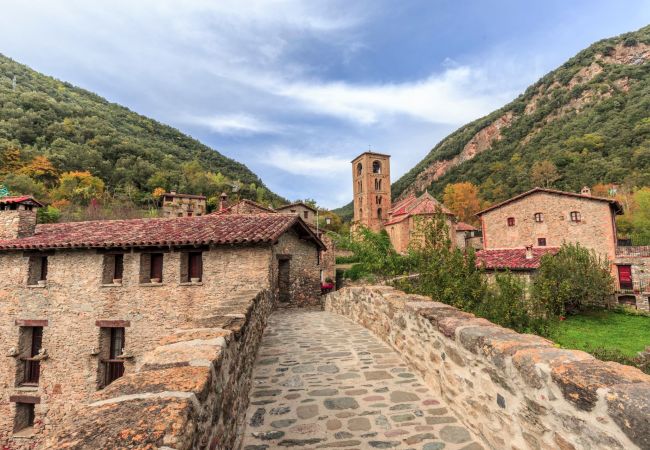 El pequeño pueblo de Beget ha conservado intacto su encanto medieval, con calles empedradas, casas de piedra y puentes históricos sobre el río.