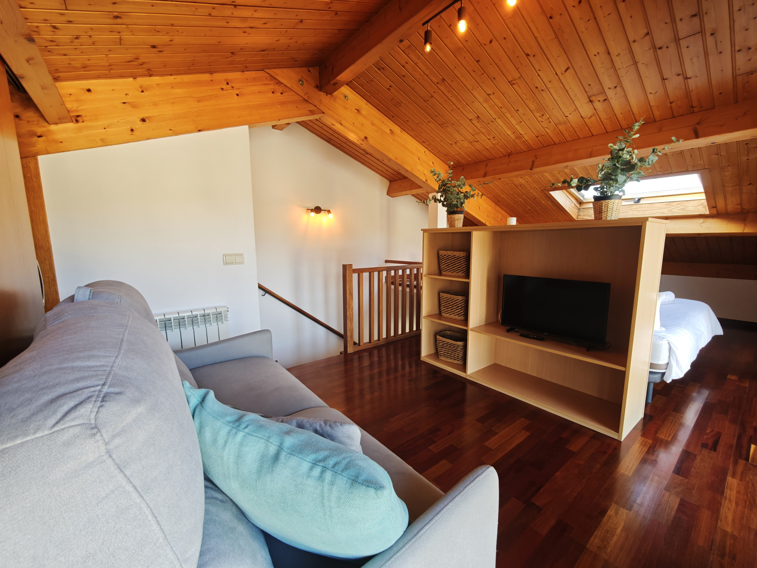 A l'altell, trobaràs una habitació amb dues llits individuals i un sofà-llit, a més d'una altra habitació amb una cama individual. També disposa d'un bany amb dutxa, Smart TV i Wi-Fi per a més comoditat.