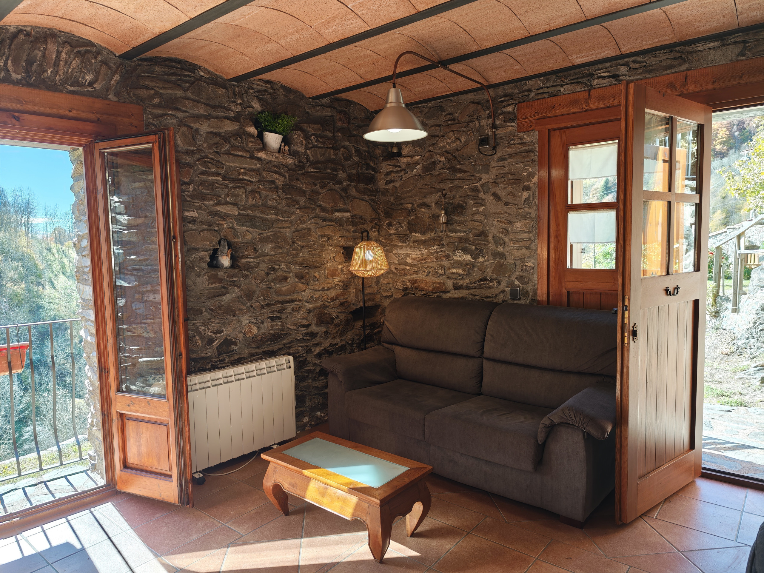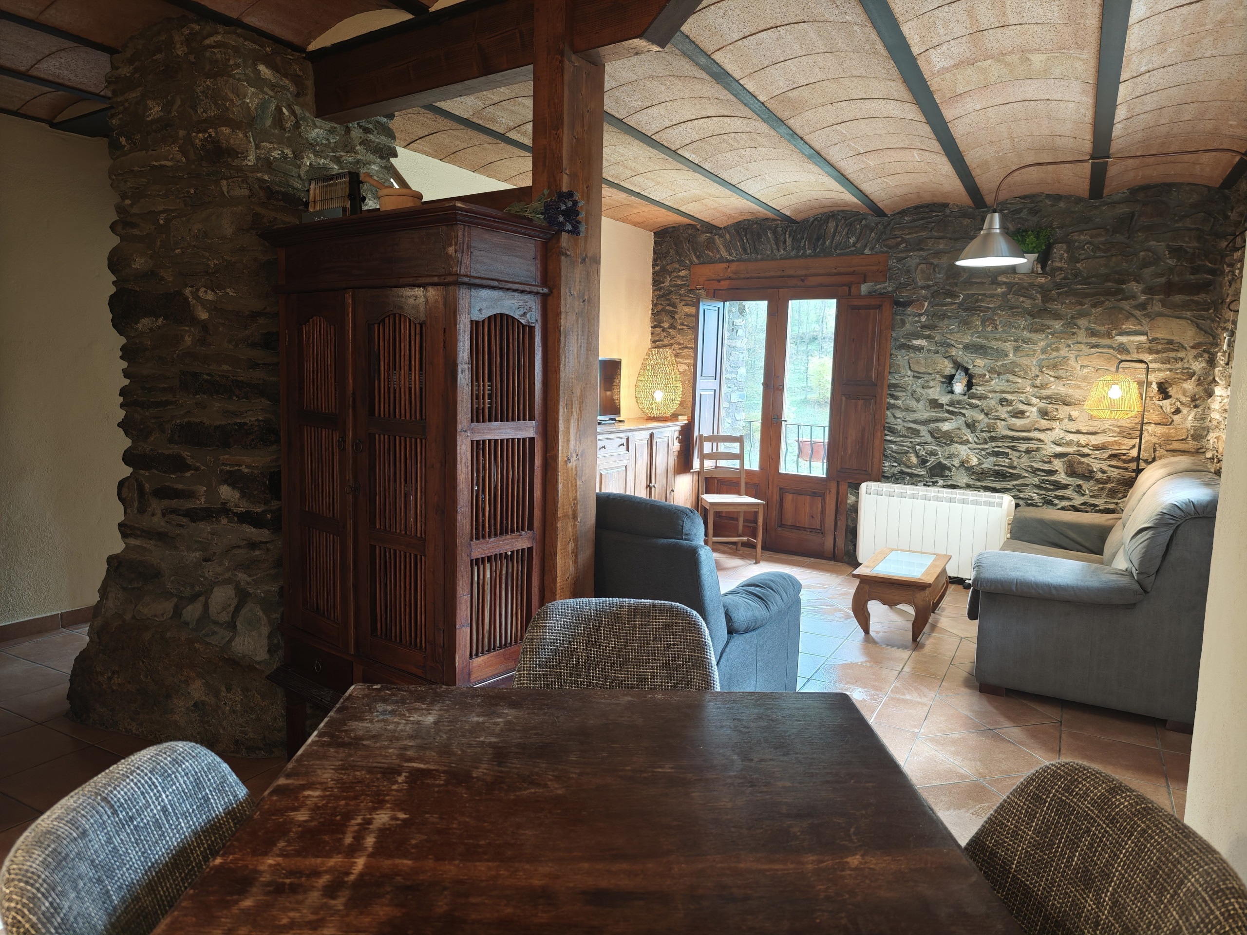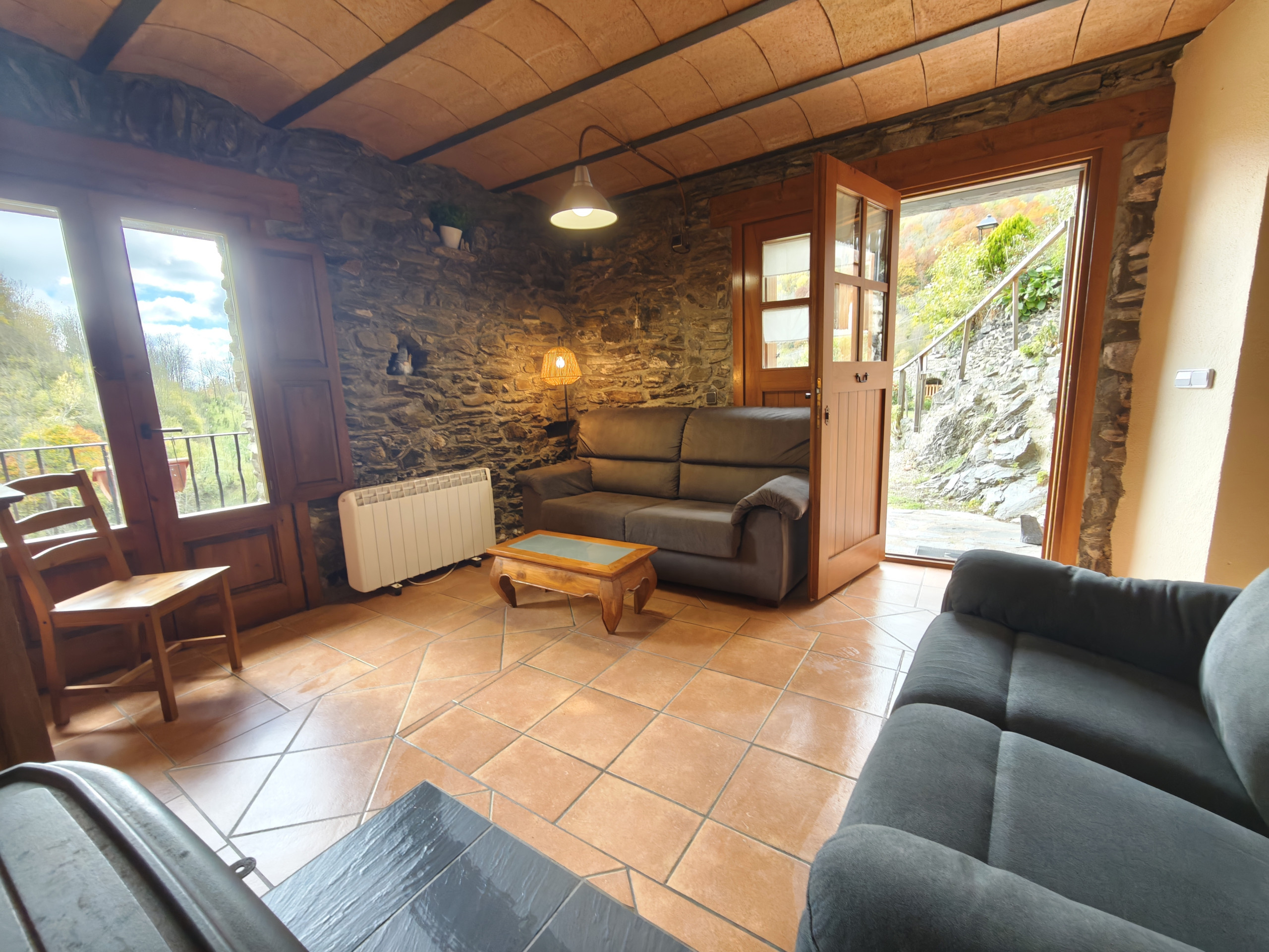 L'allotjament està perfectament dissenyat per oferir-te una estada còmoda i relaxant. Disposa d'un dormitori amb un llit de 1,50 cm, ideal per descansar després d'un dia d'activitats a l'aire lliure. El bany complet està equipat amb un assecador de cabell per a major comoditat. La cuina oberta està totalment equipada amb microones, vitroceràmica, nevera-congelador, cafetera Nespresso i torradora, la qual cosa et permetrà preparar els teus plats preferits sense esforç. La sala d'estar compta amb un sofà-llit doble, televisió smart-tv, i Wi-Fi, oferint un espai perfecte per relaxar-te en qualsevol moment del dia. A més, la llar de foc crea un ambient càlid i acollidor durant les nits fresques.
