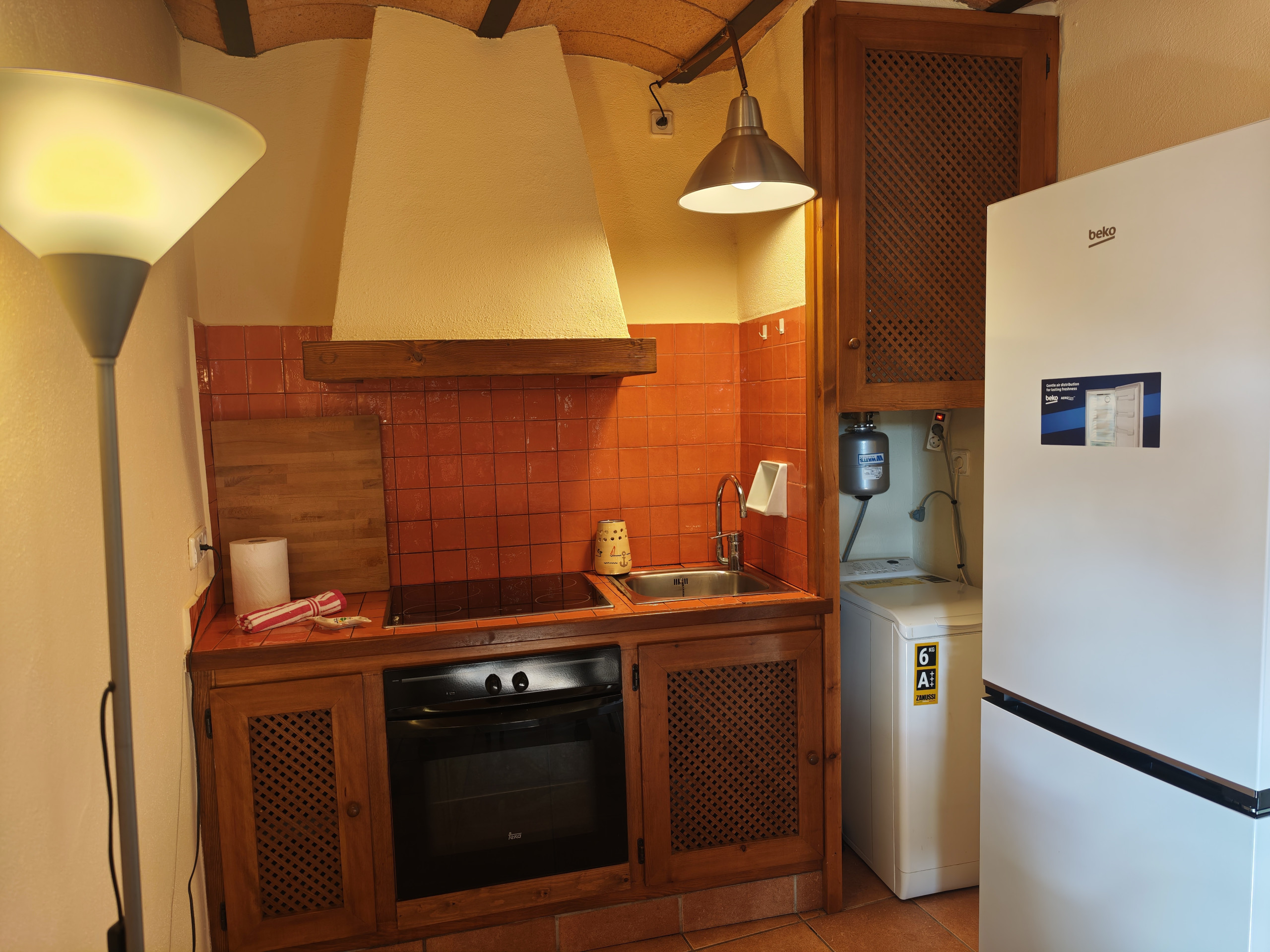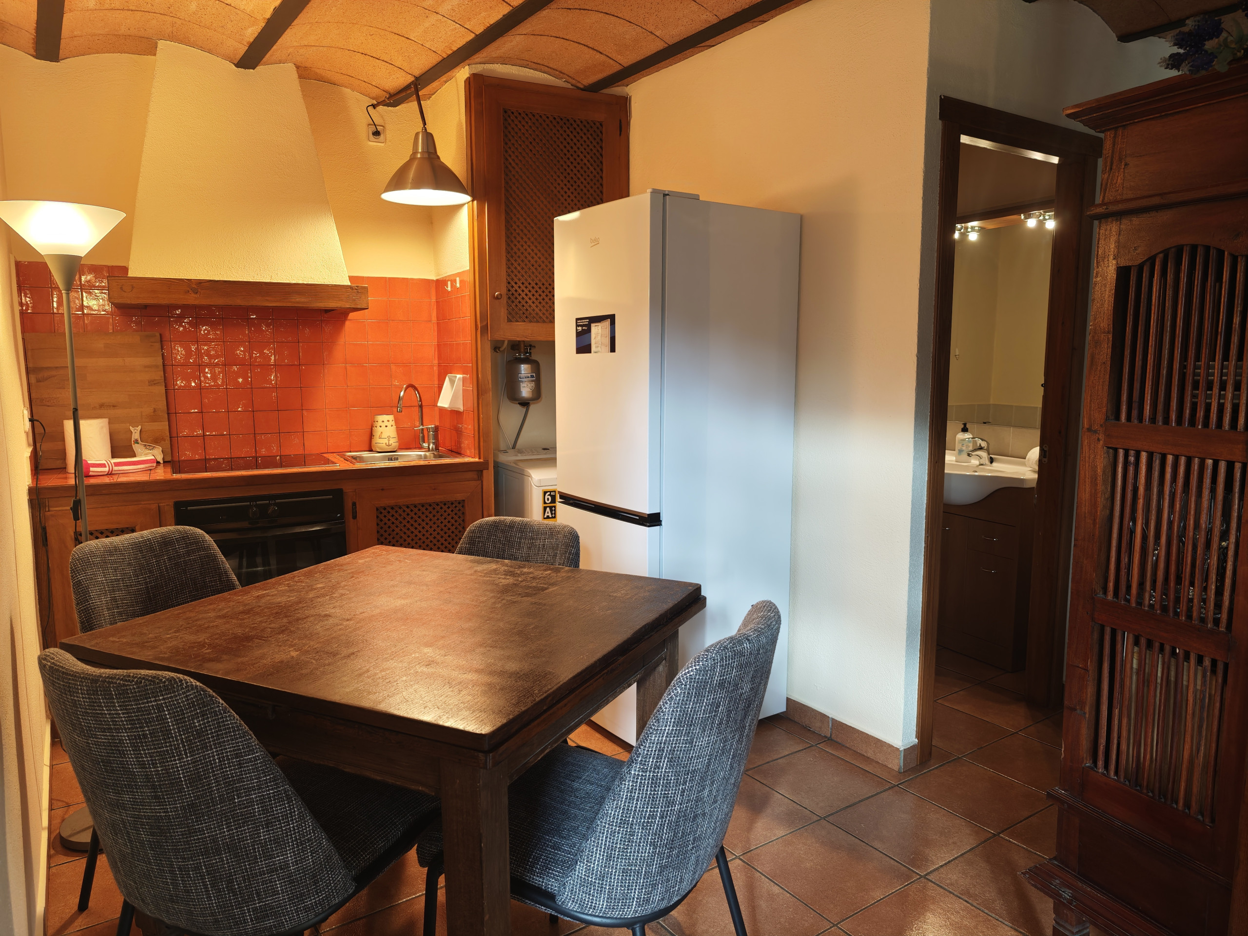La cuina americana, de vitroceràmica, està equipada amb nevera, forn, congelador, vaixella/coberteria, estris/cuina i cafetera.